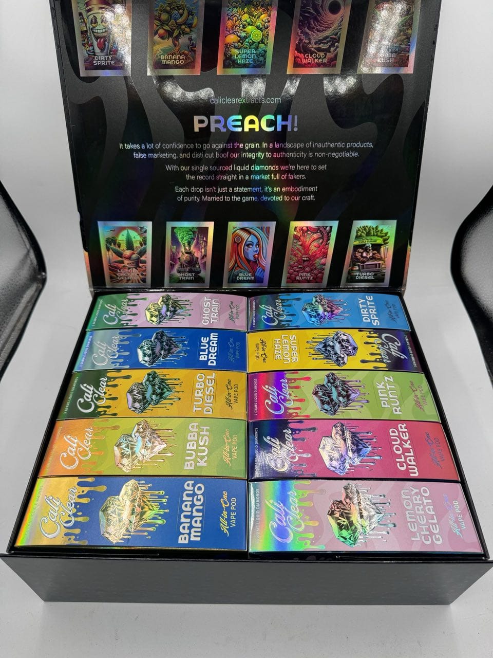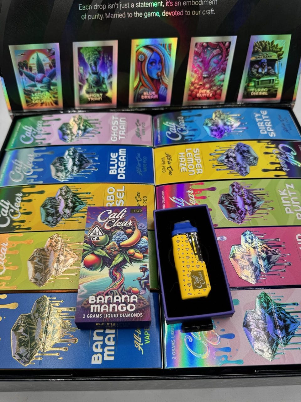 Cali Clear offers an extensive flavor range, catering to all cannabinoid consumer preferences. Each flavor is designed to highlight the cannabinoid and terpene profile of its strain, delivering a refined taste and tailored effect.