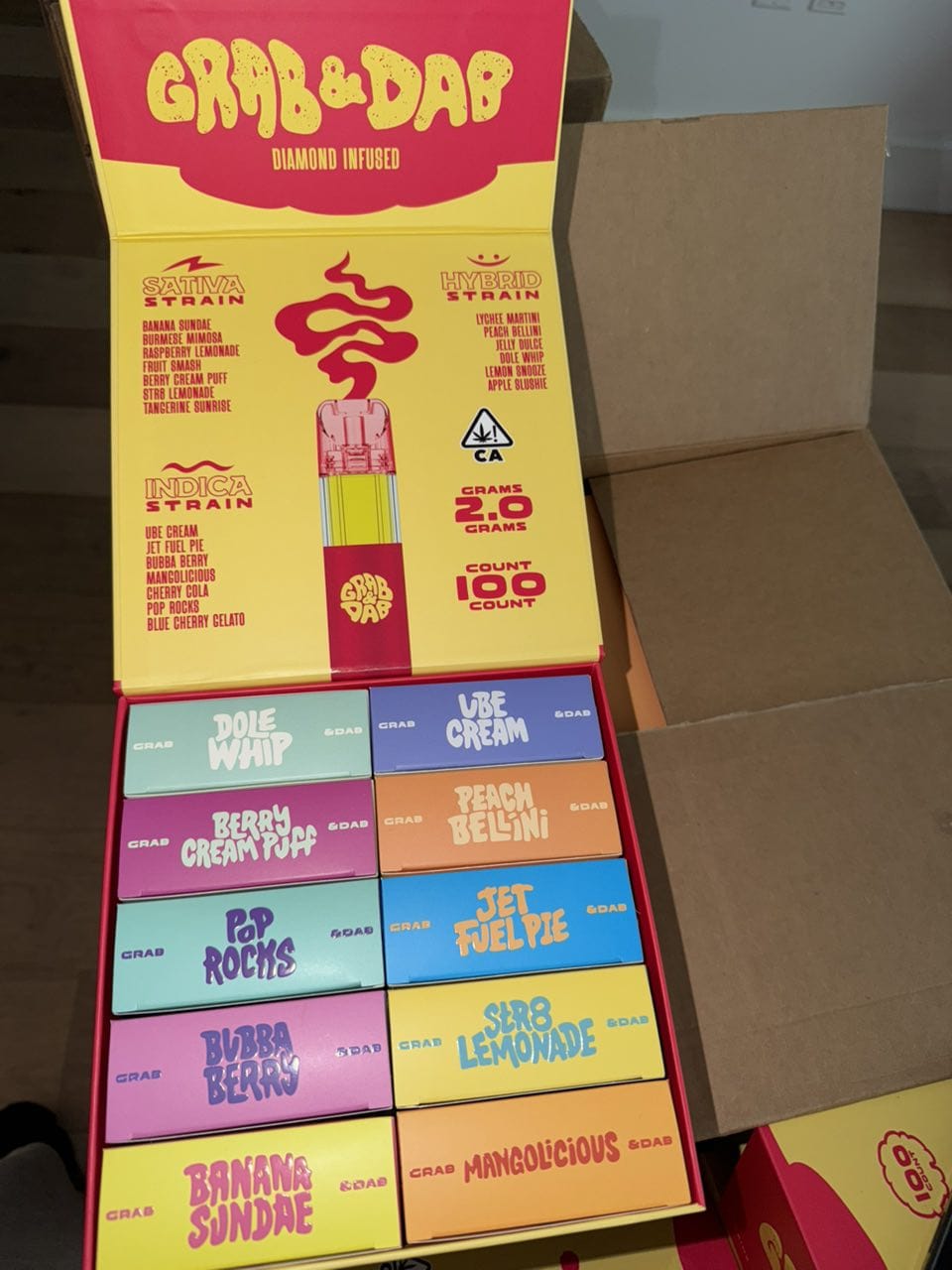 The highlight of Grab and Dab disposables is the diamond-infused cannabis oil, known for its purity and potency. Diamonds refer to crystalline THCA which, when vaporized, delivers a strong, clean high with pronounced effects. This infusion elevates the vaping experience by combining rich terpene profiles with powerful cannabinoids, resulting in flavorful, smooth inhalations.