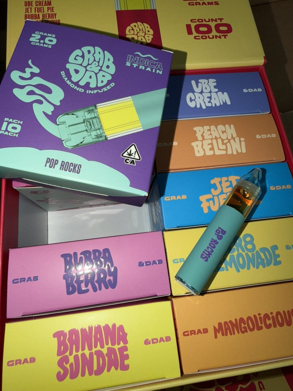 In the Grab & Dab 2g disposable, these THC diamonds are infused into flavorful, terpene-rich cannabis oils, balancing potency with taste and delivering stronger effects than typical vape products.