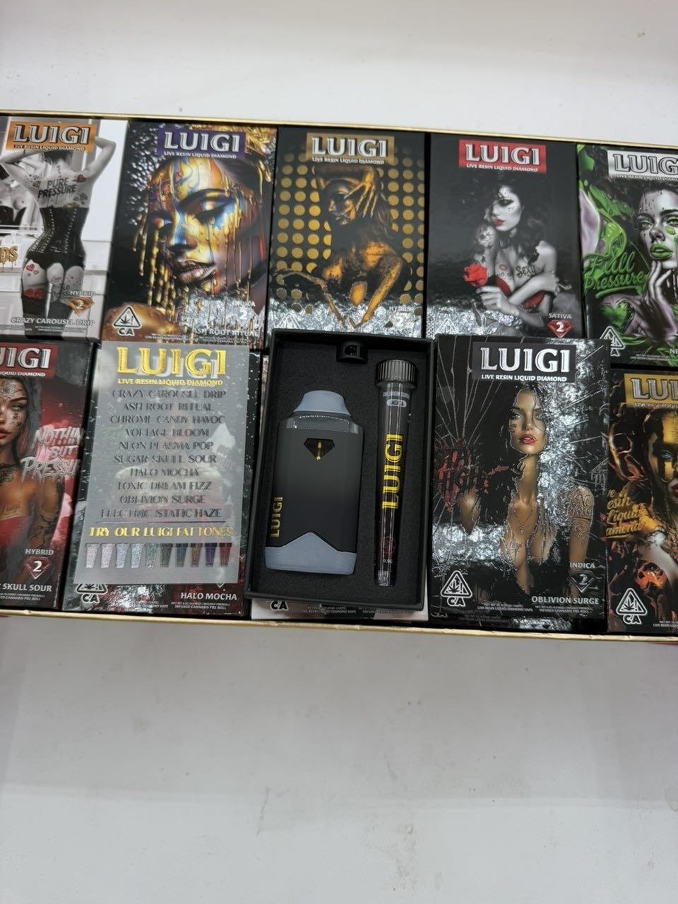For SEO and buyer intent, it is important to showcase the current Luigi flavor and strain lineup. Retailers and Luigi‑focused sites list a wide variety of strain‑specific options, often available as indica, sativa, or hybrid. Recent offerings for the Live Resin Liquid Diamonds 2G + pre‑roll bundles include: