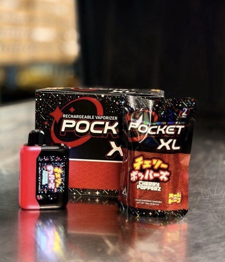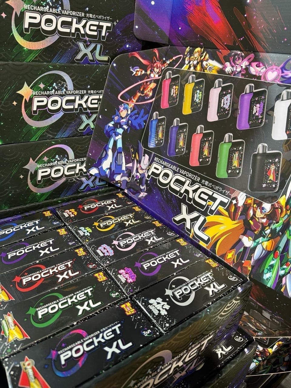 Branding leans into “Pocket XL” or “XL” language: compact, pocketable shell but a double‑sized oil reservoir and heavier‑hitting oil intended for dense, flavorful hits.